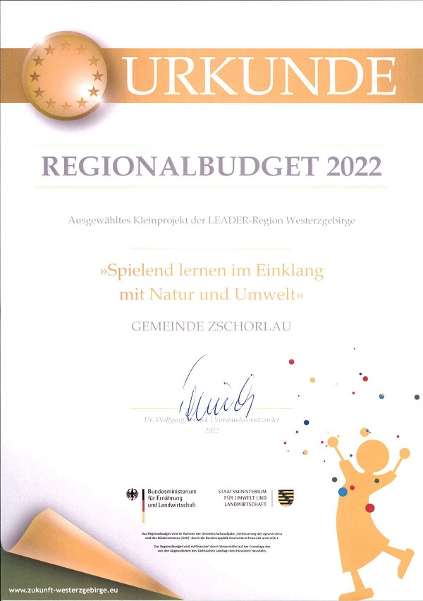 Urkunde für ausgewähltes Kleinprojekt in der Kita Burkhardtsgrün
