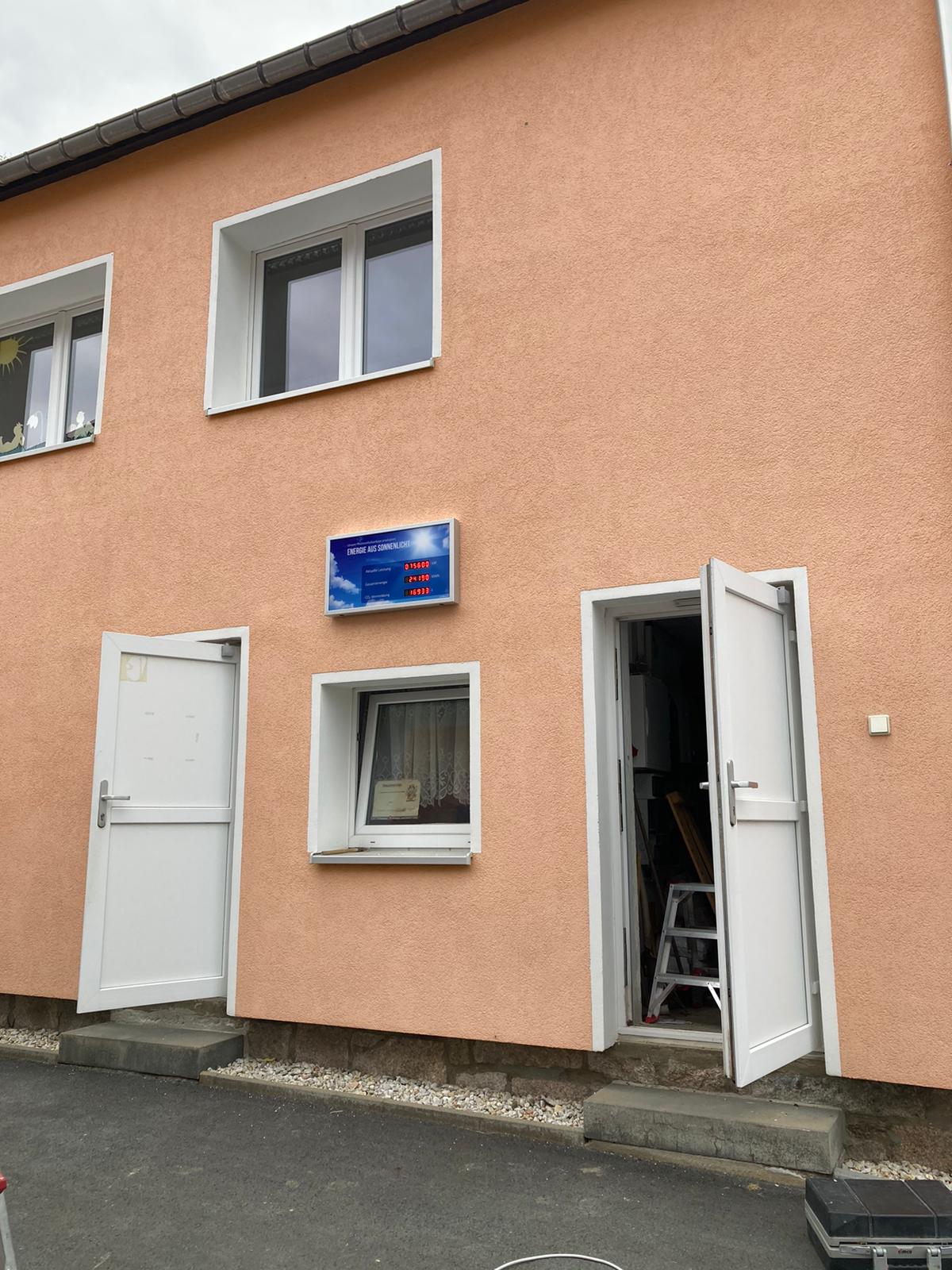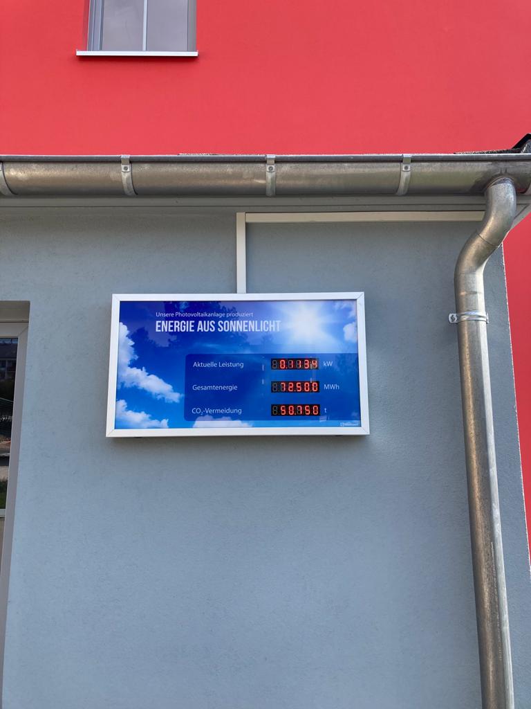 Auf beiden Objekten befinden sich Photovoltaikanlagen der Gemeinde Zschorlau. Nunmehr wurden Anzeigen installiert auf welchen die aktuelle Energieerzeugung sowie die gesamt erzeugte Energie aus Sonne dargestellt werden.