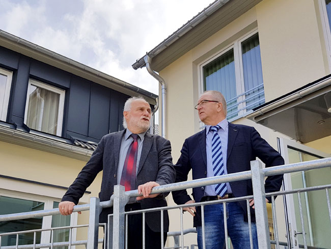 Bürgermeister schaut sich neugebauten Seniorenwohnpark an